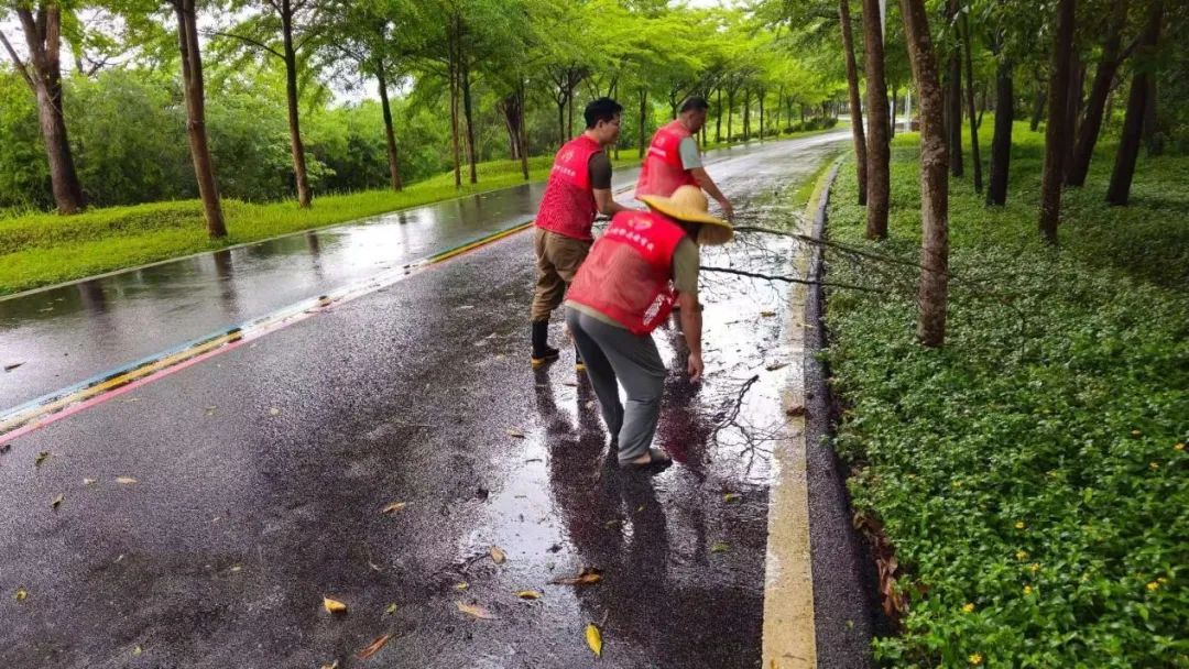 茂名露天矿生态公园管理处首善先锋志愿服务队迅速响应,积极投身防风防汛工作,加强对露天矿博物馆、公园内水域、山体、建筑物等易发生危险区域的巡查力度,及时处理安全隐患。在巡查过程中,志愿者们发现一处山体疑似小规模滑坡点位,立即设置警示标识,围蔽加固,消除隐患。同时,对公园内的排水系统进行检查和疏通,确保排水畅通,避免积水内涝,全力保障公园安全及游客生命财产安全。